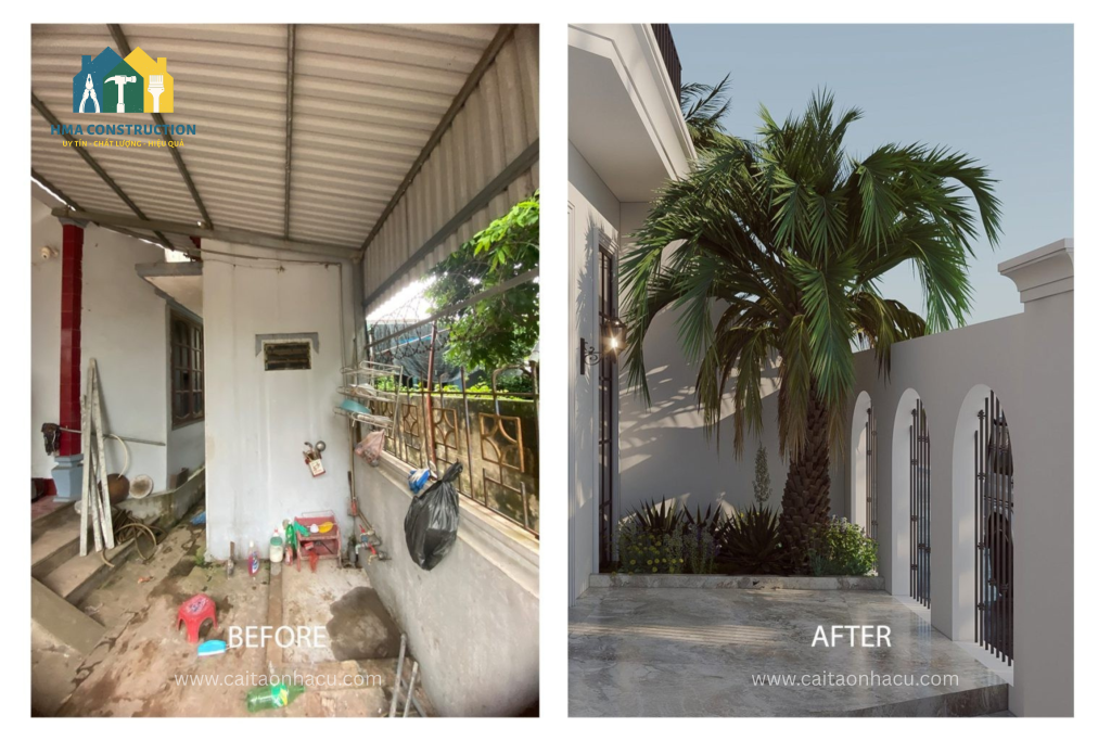 Cải tạo nội thất – ngoại thất: thay mới vật liệu, sơn tường, lát nền, nâng cấp cửa, mái và hệ thống điện nước.